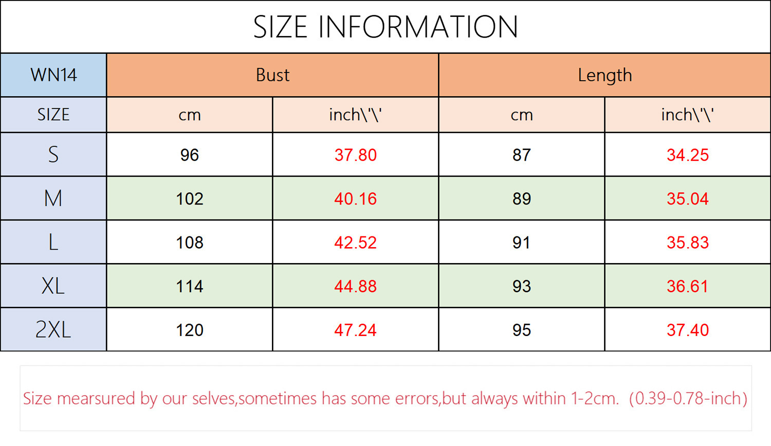 1. Asian sizes are 1 to 2 sizes smaller than European and American people. Choose the larger size if your size between two sizes. Please allow 2-3cm differences due to manual measurement. 2. Please check the size chart carefully before you buy the item, if you don't know how to choose size, please contact our customer service. 3.As you know, the different computers display colors differently, the color of the actual item may vary slightly from the following images.
